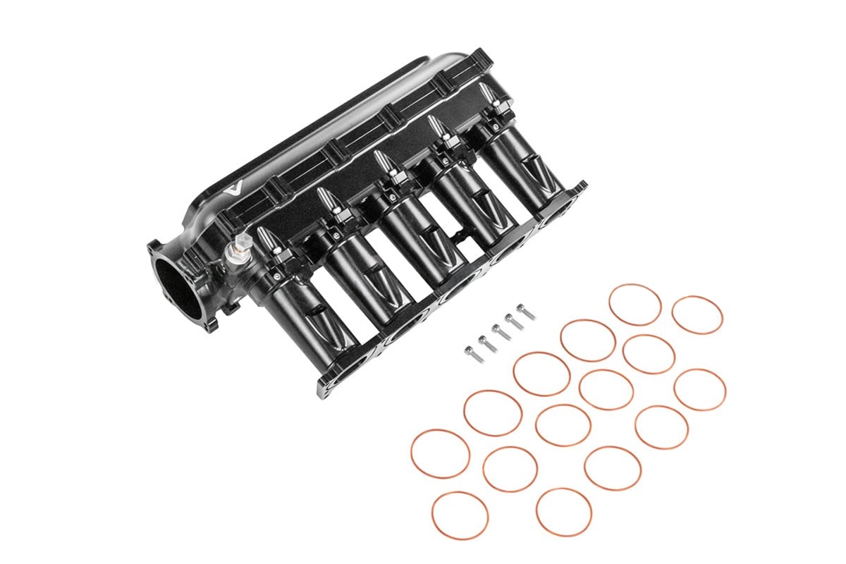 El colector de plástico original es propenso a fisuras y fugas cuando se trabaja con presiones de turbo elevadas en niveles Stage 2 o Stage 3. Alpha Competition ha desarrollado este colector en aluminio fundido de alta resistencia para eliminar este punto débil, permitiendo soportar presiones de soplado extremas con total fiabilidad. Su diseño interno de gran volumen minimiza las turbulencias y garantiza un reparto de aire equitativo entre los cinco cilindros, lo que se traduce en una mejora directa del par motor y la potencia máxima.